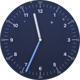 Træk minutviseren med musen (eller fingeren) for at stille tiden. Timeviseren følger korrekt med. AM/PM skifter automatisk.